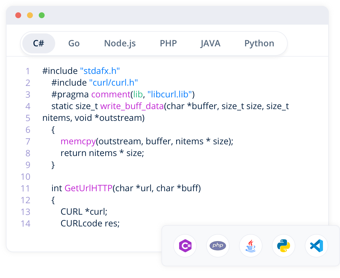 Provides sample code for popular languages like Python, Java, and Node.js, helping developers get started quickly and integrate with ease.